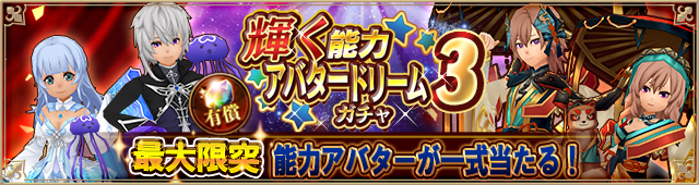 最大限界突破済みURアバター一式当選!「輝く能力アバタードリームガチャ3」登場!