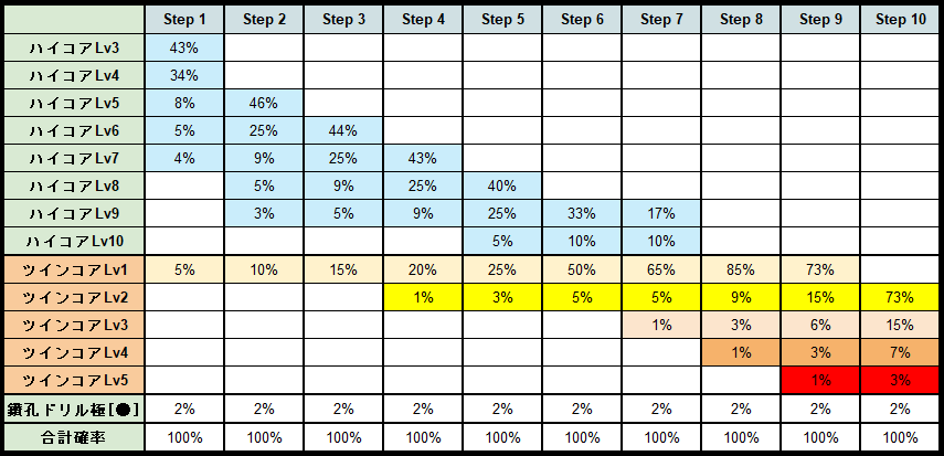 最終Step10では、98%の確率でツインコアLv2以上が当たります!